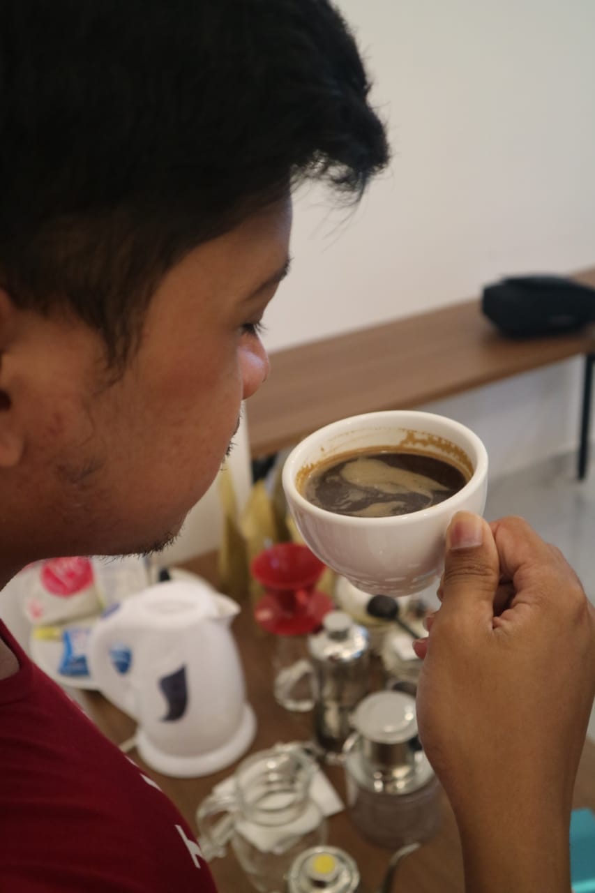 Sayangnya, karena memori hape yang penuh, kegiatan recording jadi terhenti dan gue juga udah lupa langkah-langkah selanjutnya haha. Gue sempat menjadi volunteer saat mas Dimas meminta sukarelawan, di mana gue mempraktekkan teknik (tubruk dan Vietnam Drip) yang baru saja dia ajarkan. Hasilnya? Of course, AMBYAAARRR. Pengalaman dan keterampilan memang nggak bisa bohong sih.