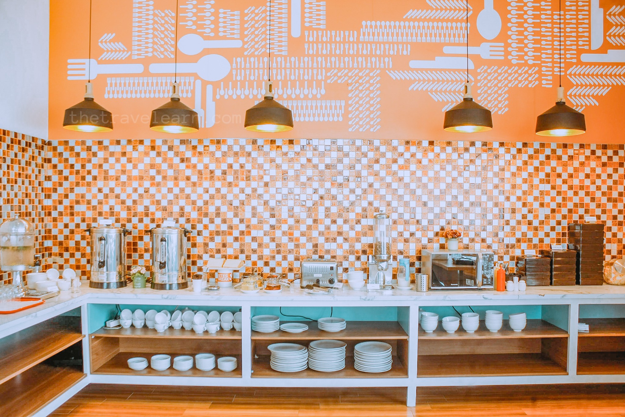 Menu yang dapat dinikmati secara buffet adalah roti, buah, jus, sereal, infused water, dan kopi.