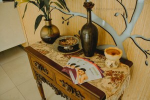Ah, betapa gue suka desain interior restoran atau ruang makan Pomelotel! Walaupun sekilas hanya menggunakan kursi-kursi dan meja yang sederhana, tapi penerapan lantai parket dan lighting keemasan mencipkana nuansa elegan. Pemilihan material meja dan kursinya juga cukup bagus kok, paduan hijau – putih yang segar dan diwarnai dengan cat yang solid. Sisi yang menghadap jalan komplek pun menjadi sumber cahaya alami untuk ruangan. Gue selalu suka konsep semi-terbuka seperti ini karena rasanya jadi sehat dan semangat.
