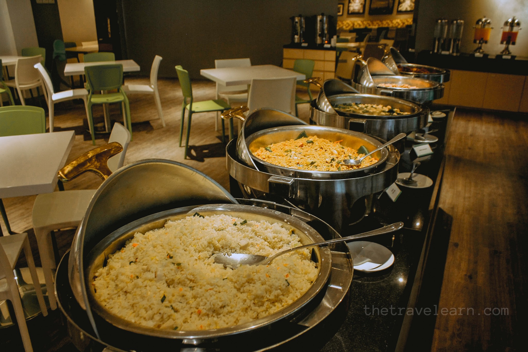 Warna dasar brand hotelnya sih ijo, tapi napa ya foto-foto di restorannya kebanyakan kuning-kuning begini? Mudah-mudahan hanya lantaran efek lampu di dalem restorannya aja.