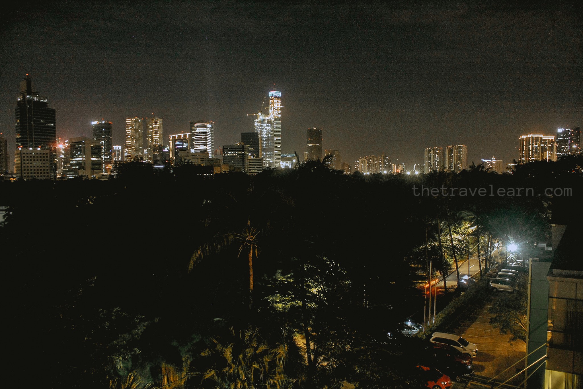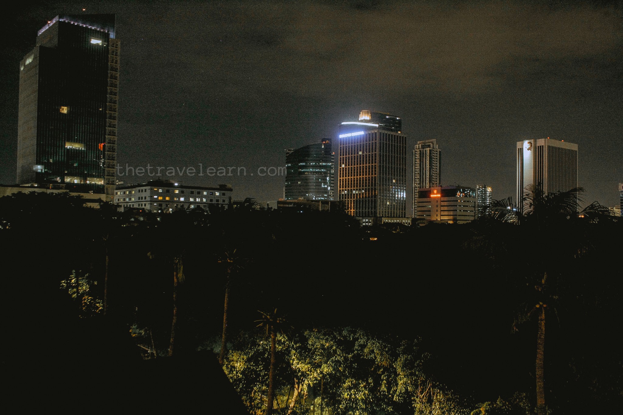 Rooftop memang kosong, tanpa fasilitas apa pun. Dekorasi dan furniturnya akan dipasang menyesuaikan dengan kebutuhan dan keinginan klien. Sebagai pecinta pemandangan lanskap kota, gue suka banget sama rooftop Pomelotel karena gue bisa menikmati gedung-gedung pencakar langit di kawasan bisnis Sudirman – Thamrin. Gue ke rooftop lagi saat malam untuk mengabadikan keindahan kota, dan ternyata hasilnya nggak mengecewakan.