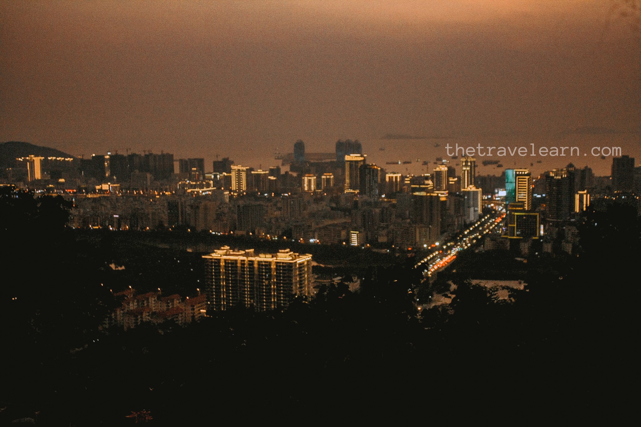 Saat hari sudah gelap dan gue udah merasa cukup rehat, gue bergegas turun kembali. Di tengah perjalanan turun pun, panorama kota Sanya masih bisa dinikmati. Gue merasa kayak lagi ada di dalam film atau serial.