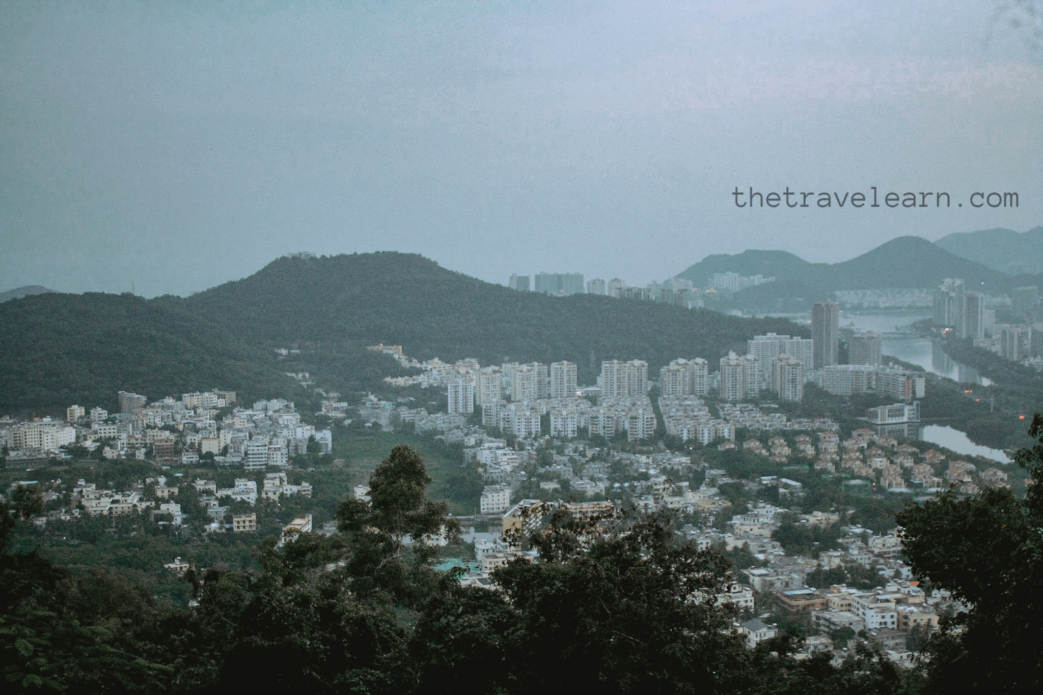 The sea, the river, and the city of Sanya from Linchunling Forest Park