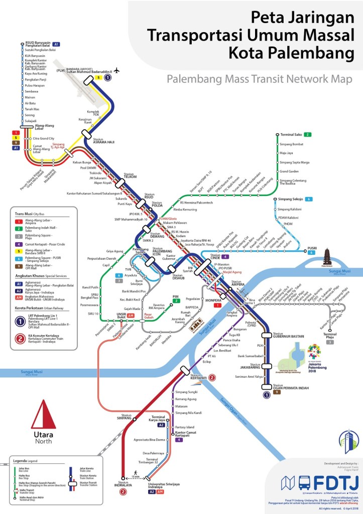 Palembang Urban Mass Transit Map, the LRT is colored in bold blue