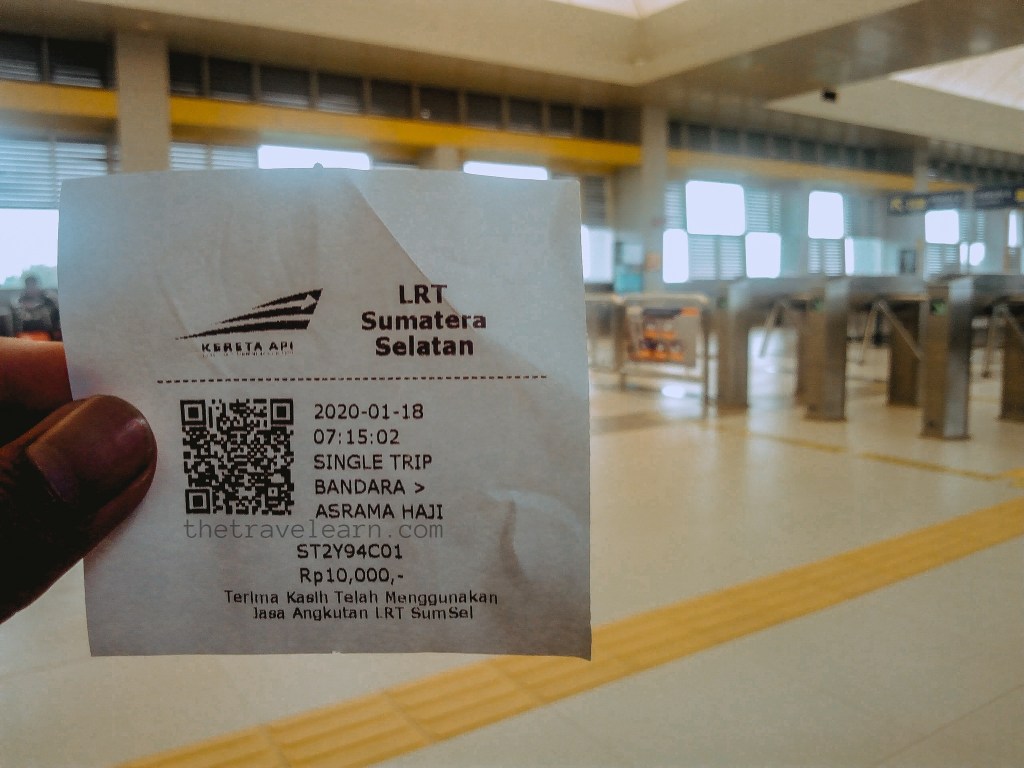 My LRT Palembang ticket, IDR 10,000 from/to airport station