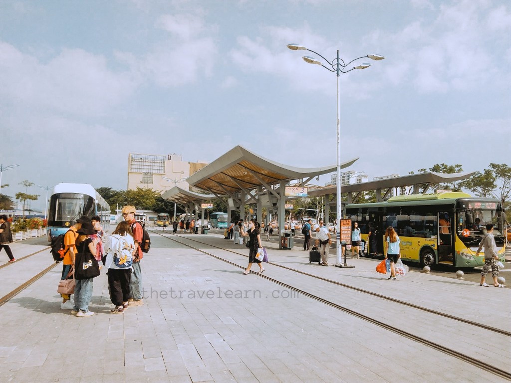 Stasiun Kereta Api Sanya ini sudah terintegrasi baik dengan bus kota dan tram. Begitu keluar gedung stasiun, langsung ada halte tram dan terminal kecil bus. Nggak perlu menyeberang jalan dulu karena menempati lahan yang sama dengan area parkir mobil.