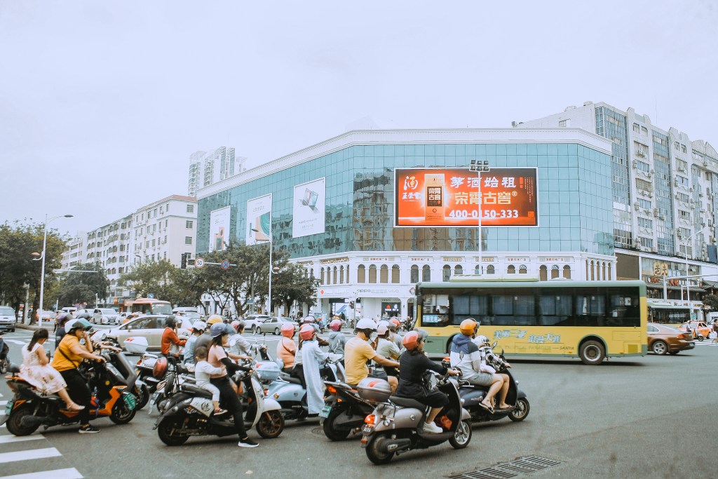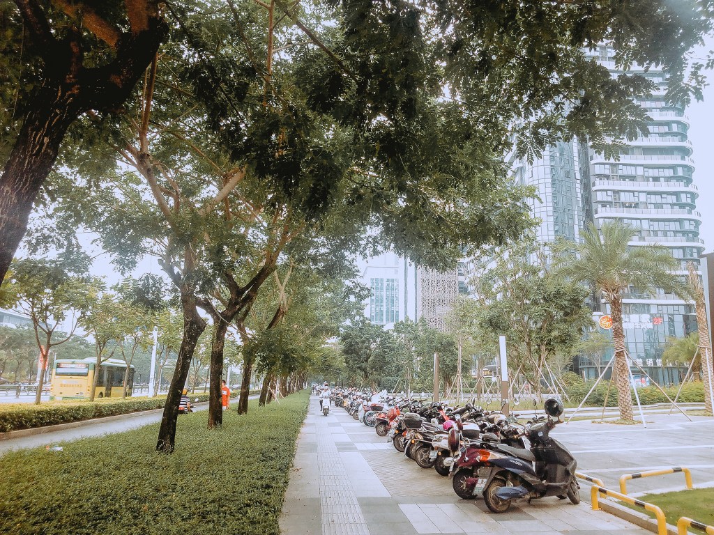 Bicara soal lalu lintasnya, jalan-jalan di kota Sanya lebih rindang dari jalan-jalan di Haikou. Karena ada beberapa hutan kota, jadi sebagian jalan protokol itu dibayangi oleh hutan di salah satu sisinya. Di jalan-jalan seperti itu, motor dan sepeda listrik punya jalurnya sendiri, seperti di Haikou. Tapi kalau jalan-jalan di pusat kota, mungkin karena nggak terlalu lebar, motor dan sepeda listrik melebur jadi satu dengan kendaraan lainnya.