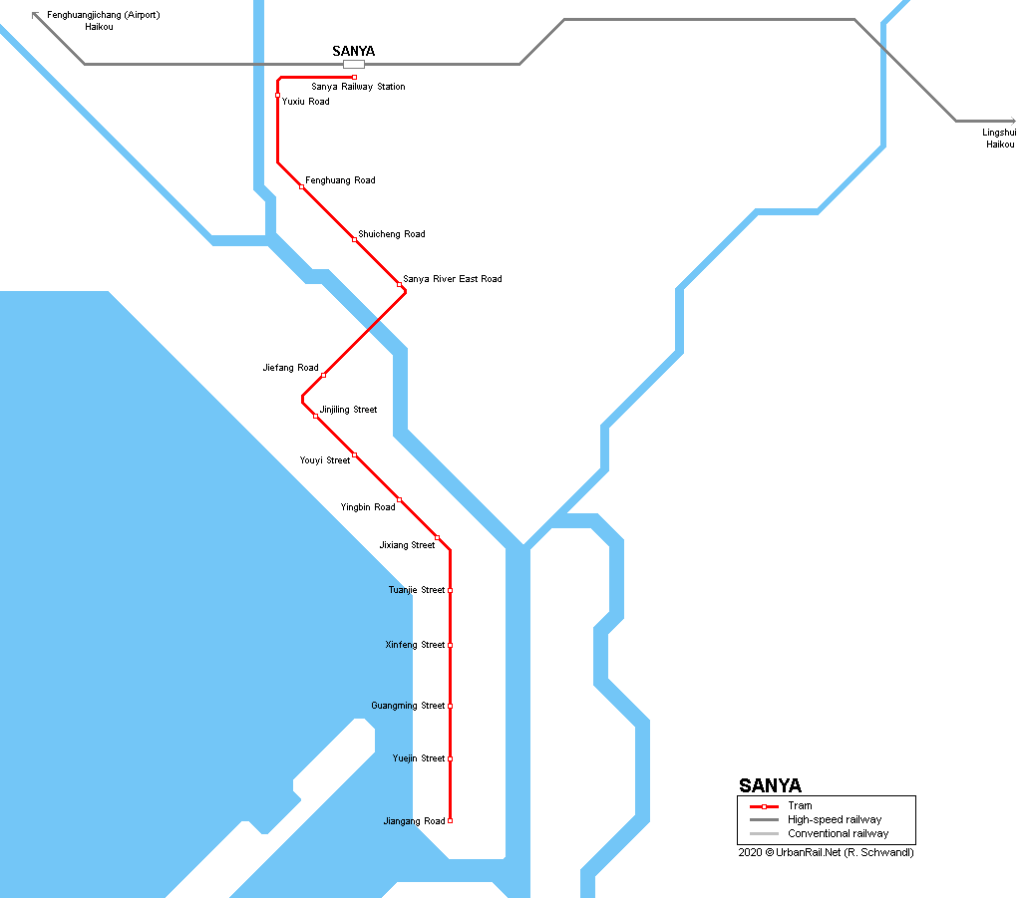 Sejak Oktober 2020, Sanya Tram sudah resmi beroperasi penuh dari Sanya Railway Station hingga Jiangang Road.