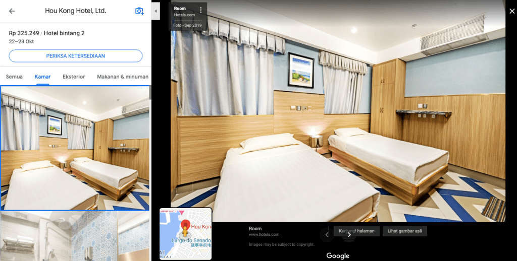Nggak bisa dipungkiri, bahwa harga akomodasi di Macau itu mahaaalll. Gue nginep di Hotel Hou Kong via Traveloka yang harganya Rp700 ribuan semalem. Itu udah tergolong yang paling murah! Gue udah nyari di Traveloka, booking.com, hostelworld, dan hostelbookers. Harga rata-rata di sana biasanya di kisaran Rp1 jutaan per kamar per malam. Jadi better kamu bisa cari travelmate buat ke Macau. Oh iya, Rp700 ribu itu juga belum termasuk sarapan, karena nggak ada sarapan.