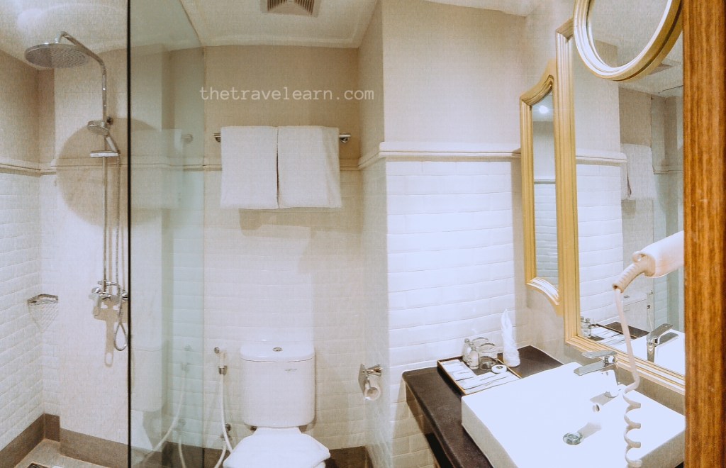 Pilihan desain shower, tile, dan pencahayaannya membuat kesan elegan tak absen dari shower area Hotel Solia Zigna Laweyan Solo. Dengan shower bertipe rainforest shower, tile berbahan marmer, dan kemasan toiletries yang eksklusif, terasa betul kualitas Solia Zigna Laweyan sebagai sebuah hotel berbintang 4. Shower juga mudah digunakan dengan tingkat semburan dan derajat panas yang nyaman, nggak ada masalah. Aliran air pun tak terhambat.