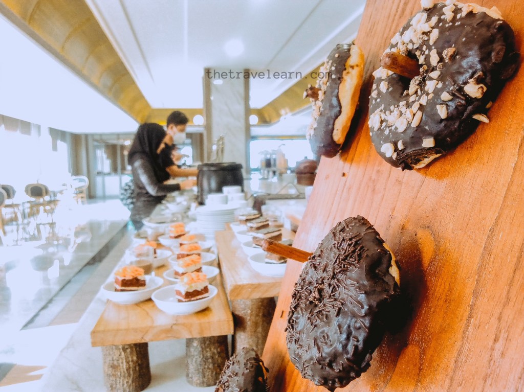 Aku kalau hotel bintang 3 ke atas selalu dengan sarapan, mbak. Experience baru soalnya. Ragam menu, tampilan, dan rasanya pasti banyak yang bisa diulas.