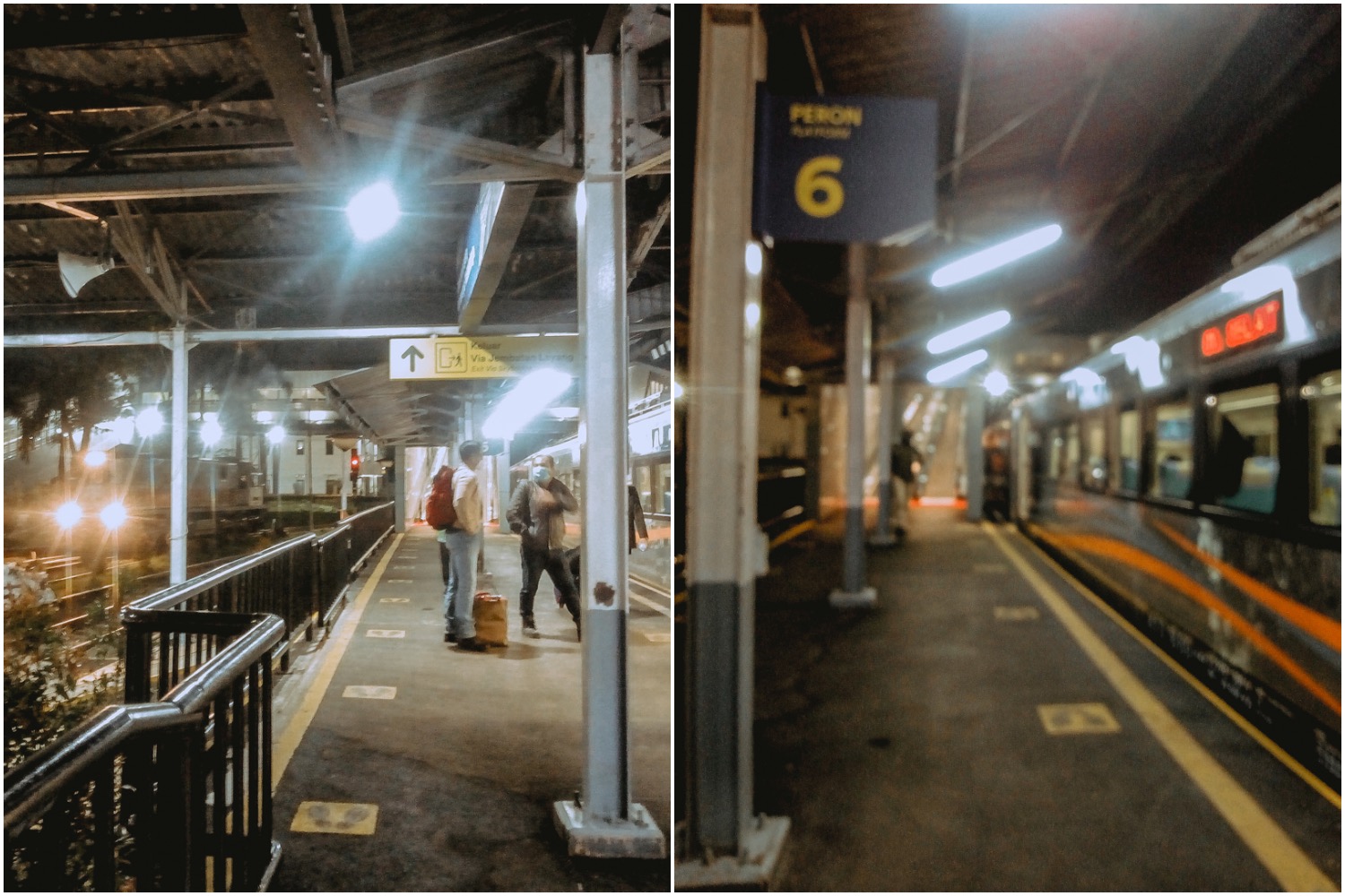 Suasana peron 6 Stasiun Bandung malam itu dengan penampilan baru