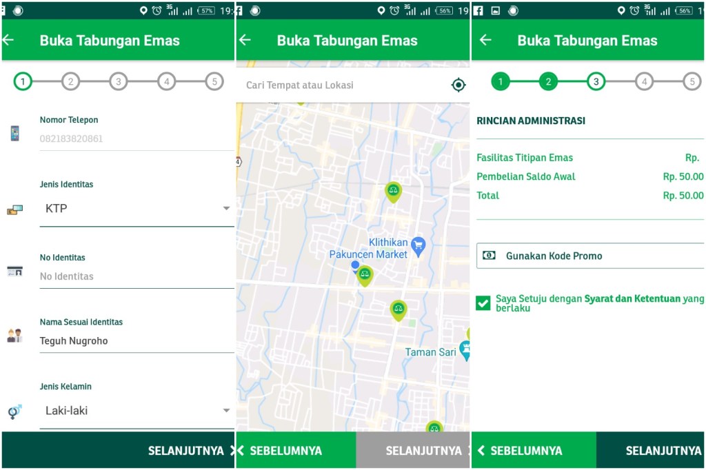 Begitu membuka homepage, banner berisi CTA yang clickable untuk membuka Tabungan Emas langsung nongol di bawah header utama. Klik, maka kamu akan diarahkan pada sebuah laman baru untuk mengisi data diri, nama lengkap dan nomor HP sudah terisi otomatis. Siapkan hasil scan atau fotokopi KTP ya, karena dibutuhkan dalam proses ini.