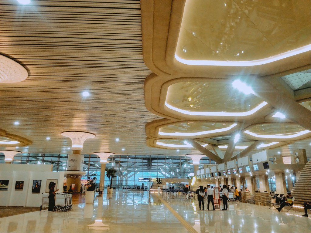 Ini memang pertama kalinya aku terbang dari bandara ini, namun aku sudah 2 kali menginjakkan kaki di lahan bandara ini sebelumnya. Pertama saat menjajal kereta bandara Yogyakarta (waktu itu YIA sudah beroperasi namun masih dalam tahap pembangunan, area drop-off belum dibuka), dan yang kedua saat mengantarkan Ara pada bulan Januari 2021 lalu.