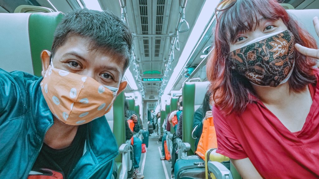 Karena tiket sudah gue beli beberapa hari sebelumnya dengan aplikasi KAI Access, jadi saat masuk ke peron gue tinggal scan barcode dari tiket di aplikasi. Nggak ada pemeriksaan KTP atau sertifikat vaksin, meski sudah kami siapkan. Syukurlah, karena di dalam tiket gue masih dinyatakan baru sekali vaksin, padahal udah lengkap.