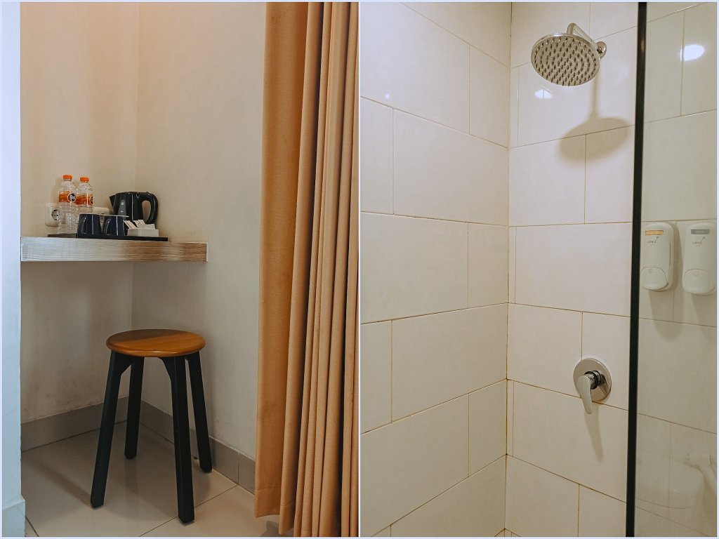 Gue juga suka kamar mandinya, karena udah pake shower yang terpasang di dinding, bukan hand shower yang harus selalu dipegang dengan tangan. Capek, cyin. Mandi kan mau rileks. Toiletries-nya standar, tapi no complaint buat ini.
