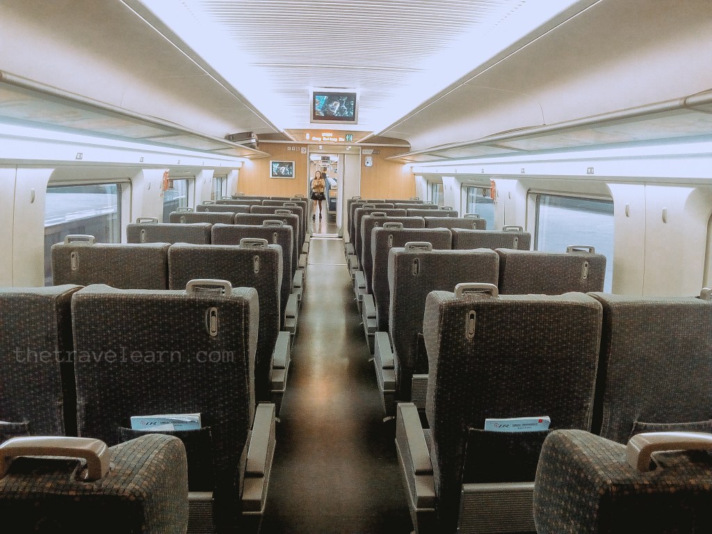 Tidak seperti bayanganku, tapi tetap duduk dengan selamat di dalam kereta. Kursiku berada di lorong, 2 orang di sebelah kanan adalah warga lokal. Aku tak bisa menikmati pemandangan, dan menghabiskan waktu dengan mengamati keriaan kereta yang penuh dan berisik.