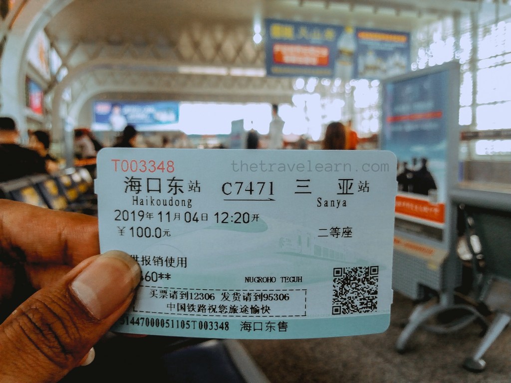 Untuk perjalanan kembali ke Haikou ini, aku membeli tiket perjalanan pagi. Aku checkout dari hostel saat pagi masih gelap, lalu naik ojek ke stasiun menerabas dinginnya udara Hainan di bulan November. Yah, meski nggak ada musim dingin di Hainan, tapi masih kecipratan dikit-dikit lah dari Mainland China.