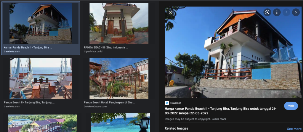 Selanjutnya ada Panda Beach II – Tanjung Bira, yang menjadi rekomendasi tempat penginapan dekat pantai lainnya di Sulawesi Selatan. Guest House bintang dua yang satu ini berlokasi di Pasir Putih Tanjung Bira, Tanjung Bira, Bulukumba, Sulawesi Selatan.