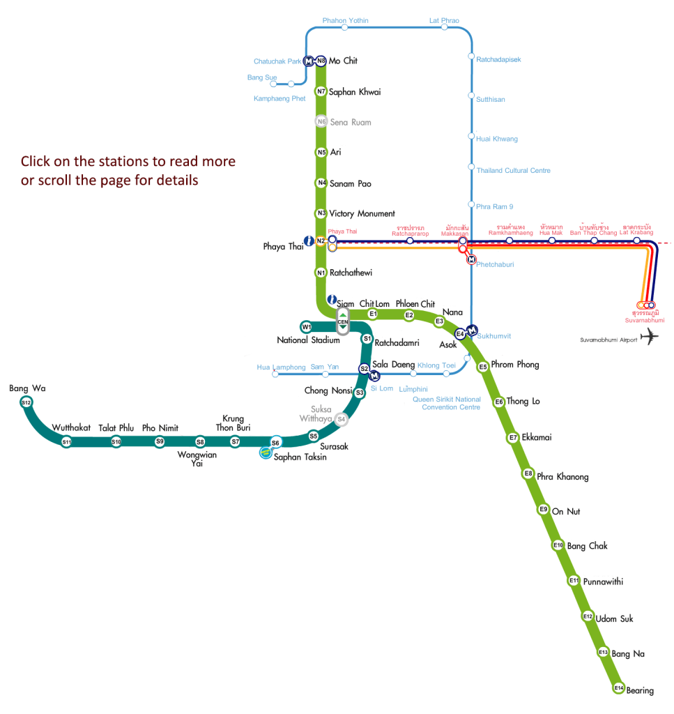 BTS (Bangkok Transit System) adalah jalur kereta layang di Bangkok yang terdiri dari 2 jalur, Silom Line dan Sukhumvit Line. Di tahun 2015, Sukhumvit Line hanya menjulur dari Mochit hingga Bearing, dan Silom Line hanya sepanjang National Stadium-Bang Wa. Namun sekarang lihatlah, Sukhumvit Line memanjang dari Khu Khot hingga Kheha sepanjang 53 km (47 stasiun). Stasiun-stasiun baru dibangun di kedua arah secara ekspansif. Hanya Silom Line yang masih bertahan dengan jalur sepanjang 14 km, kini melayani 14 stasiun.
