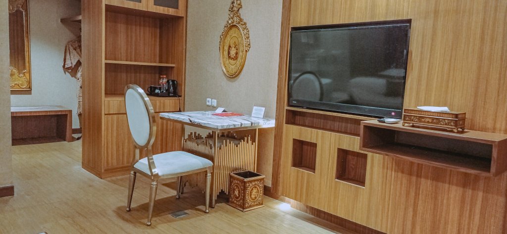 Salah satu keseruan diajak hotel tour oleh staf hotel adalah bisa mengintip tipe-tipe kamar mewahnya yang sekarang belum bisa kita reservasi sendiri, hehe. Membayangkan gimana rasanya tinggal di kamar mahal itu bak anak sultan. Ramada Suites Solo pun punya kamar seperti itu. Namanya, kamar Grand Suite.