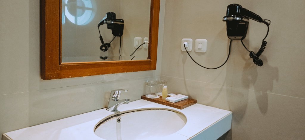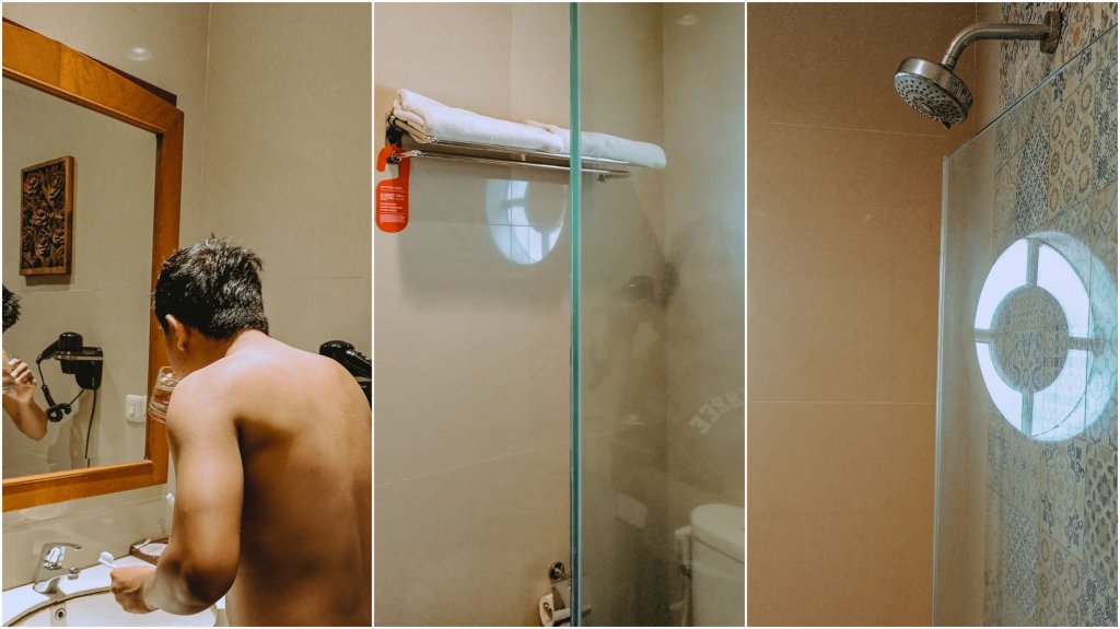 Untuk kamar mandinya, seperti biasa dibedakan antara dry area dan wet area yang dipisahkan oleh sekat kaca. Ada toiletries yang disediakan, tapi gue lebih suka menggunakan alat mandi sendiri. Pancuran air panasnya juga enak dan mudah diatur.