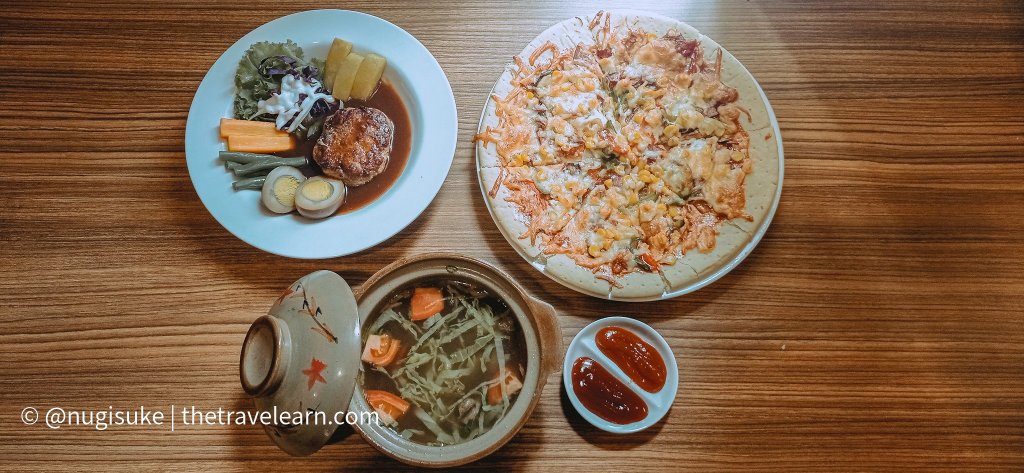 Oh iya, sesaat setelah check-in kami juga memesan room service untuk makan siang. Kami order nasi soto daging, pizza, dan selat solo. Maklum laper, belum makan siang dari Jogja hehe. Mau cari makan di luar, bawaannya males dan capek. Daripada online food delivery, mending sekalian cobain makanan hotel biar makin afdol pengalaman menginapnya.