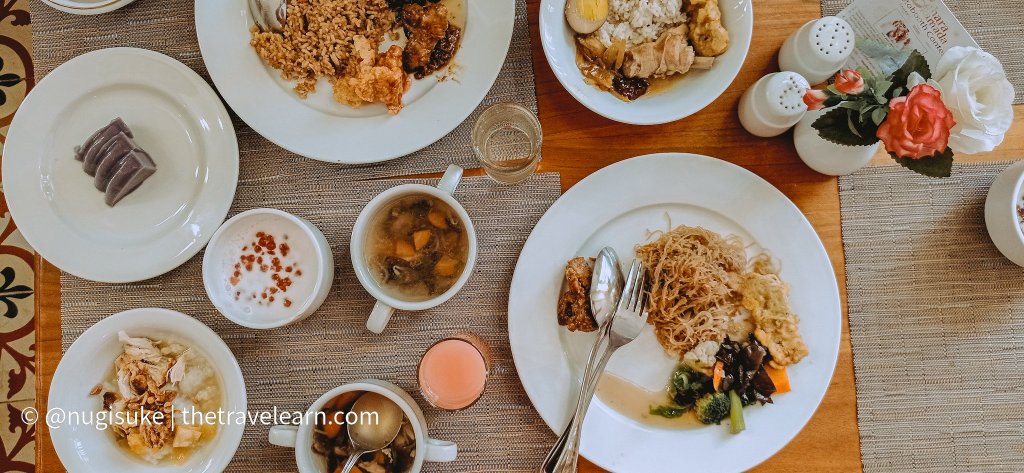 Seperti hotel kebanyakan, sarapan berlangsung dari pukul 6:00 hingga 10:00. Karena nggak banyak tamu, gue dan Ara bisa leluasa memilih tempat duduk dan mengabadikan foto/video.