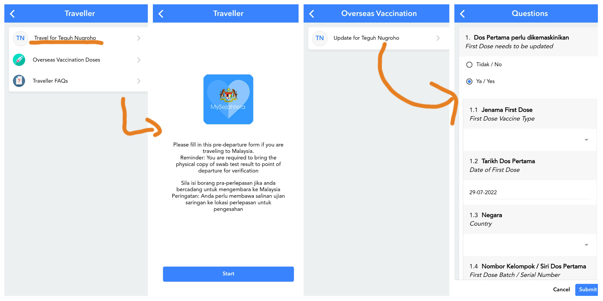 Cara mengisi pre-departure form dan memperbaharui sertifikat vaksin di aplikasi MySejahtera