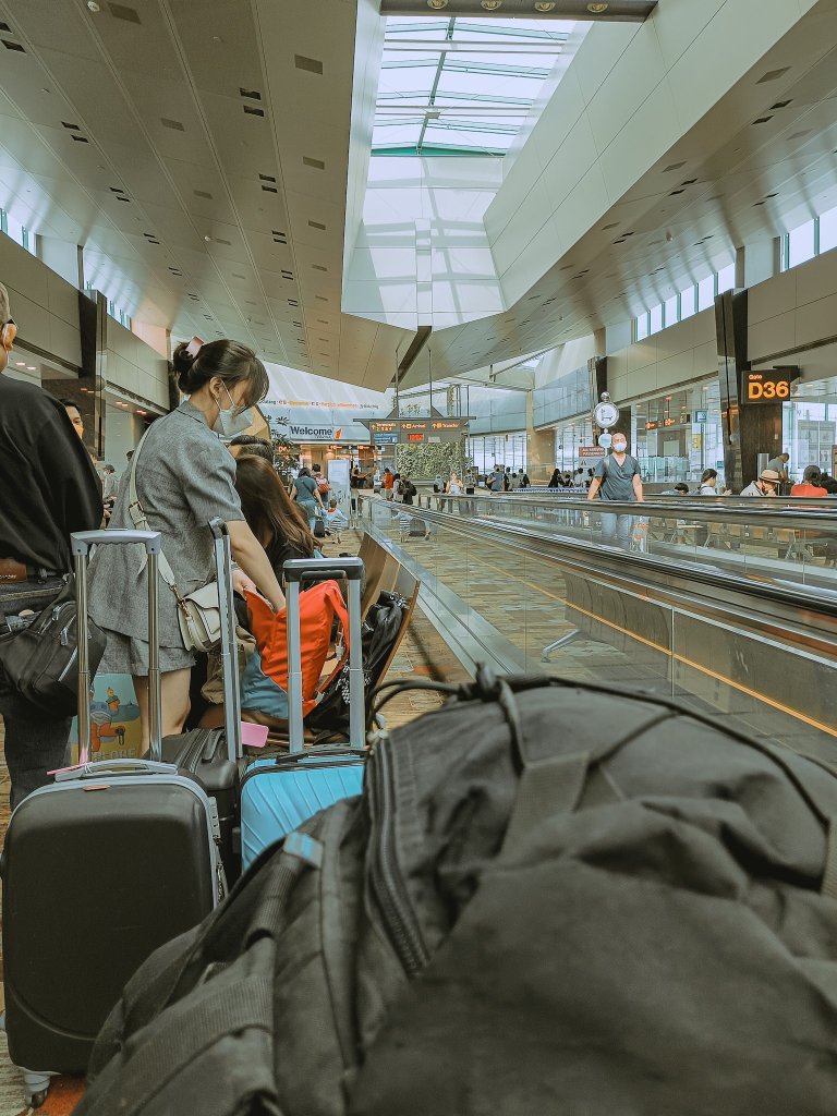 Kayaknya dulu nggak gini-gini amat. Usai mendarat dan memasuki bangunan terminal, gue selalu punya cukup waktu untuk bersantai-santai di toilet, mengatur mifi atau SIM card lokal, atau menata ulang isi ransel. Mungkin karena masih pandemi, pihak Bandara Changi ingin setiap penumpang yang masuk lebih terkontrol alurnya. Jadinya penumpang-penumpang dalam range jadwal kedatangan yang (hampir) sama diminta menuntaskan proses imigrasi dalam range waktu yang sama juga.