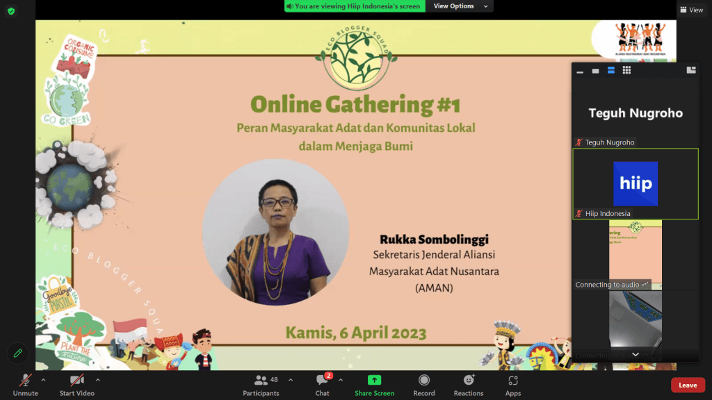 Hal itu gue ketahui setelah mengikuti Online Gathering #1 Eco Blogger Squad dengan tema, “Peran Masyarakat Adat dan Komunitas Lokal dalam Menjaga Bumi.” Kak Rukka Sombolinggi, Sekretaris Jenderal dari Aliansi Masyarakat Adat Nusantara (AMAN).