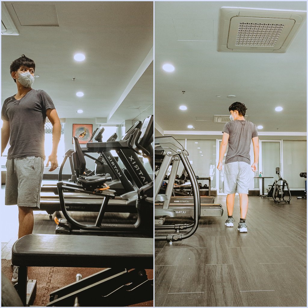 Fitness center terletak di lantai yang sama dengan restoran. Ragam alatnya cukup, areanya luas, fasilitas juga lengkap dan layak. Ada ruang ganti, shower room, air minum, dsb. Satu sisinya juga menghadap pemandangan kota dengan jendela-jendela yang lebar. Sayangnya sepiii banget. Kayaknya memang jarang banget tamu hotel yang nge-gym. Salut sama pihak hotel yang tetap menjaga kebersihan dan kerapian ruang gym.