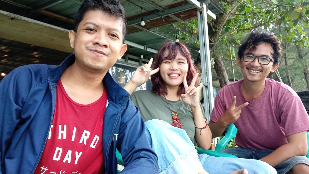 Kedai-kedai makan sederhana berjajar di sepanjang Jalan Pariwisata, bersisian dengan garis pantai. Kami mampir di salah satu café ala ala, sekadar untuk bersantai, berkenalan, dan berbagi kabar. Kami duduk di area kursi yang ditata lepas pada pantai yang terbuka. Sambil menanti baskara terbenam di Pantai Panjang, kami berbincang. Tentang kehidupan, tentang Bengkulu, tentang dunia.