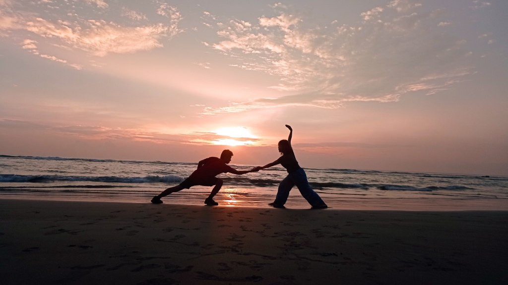 Jelang petang, aku dan Ara memuaskan diri untuk mengambil foto berlatarkan langit senja Pantai Panjang.