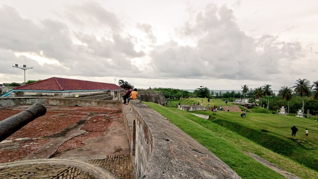 Ah, rasanya aku bisa betah duduk berlama-lama di atas Benteng Marlborough, tentu saat cuaca nyaman. Membawa kopi racikan sendiri, tenggelam dalam imaji, berbicara pada senja di penghujung hari.