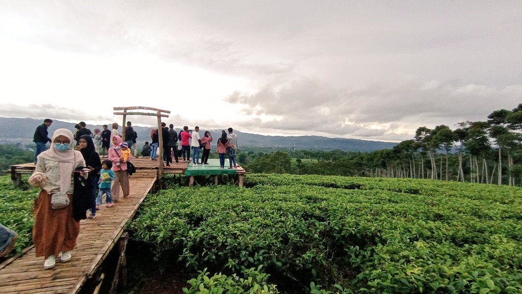 Tiba di kawasan inti wisata Kabawetan, suasana sangat ramai. Jalanan dipadati kendaraan-kendaraan yang parkir dan berjalan tersendat. Maklum, hari itu adalah tanggal merah 1 Januari 2022. Nggak harus ke kawasan itu kok, silakan pilih sudut-sudut lain yang lebih sepi. Kau tak akan kehabisan perkebunan teh di sini.