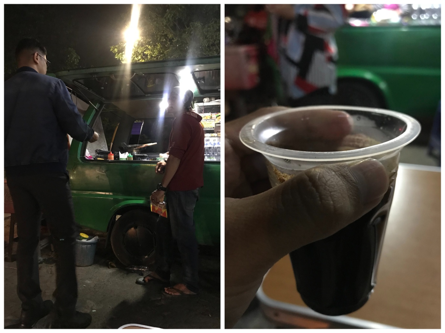 Sembari menunggu, saya membeli segelas kopi hitam panas dan gorengan dari sebuah food truck, eh food angkot, yang menjajakan dagangannya di halaman parkir Jackal Holidays. Lokasi pool-nya cukup nyaman, persis di samping ATM BRI. Selain food angkot itu, ada juga satu atau dua vendor makanan kecil lainnya, kalau tidak salah batagor. Ah, rindunya saat-saat seperti ini, melakukan perjalanan seorang diri dan menikmati santapan perut sederhana yang menyenangkan hati.