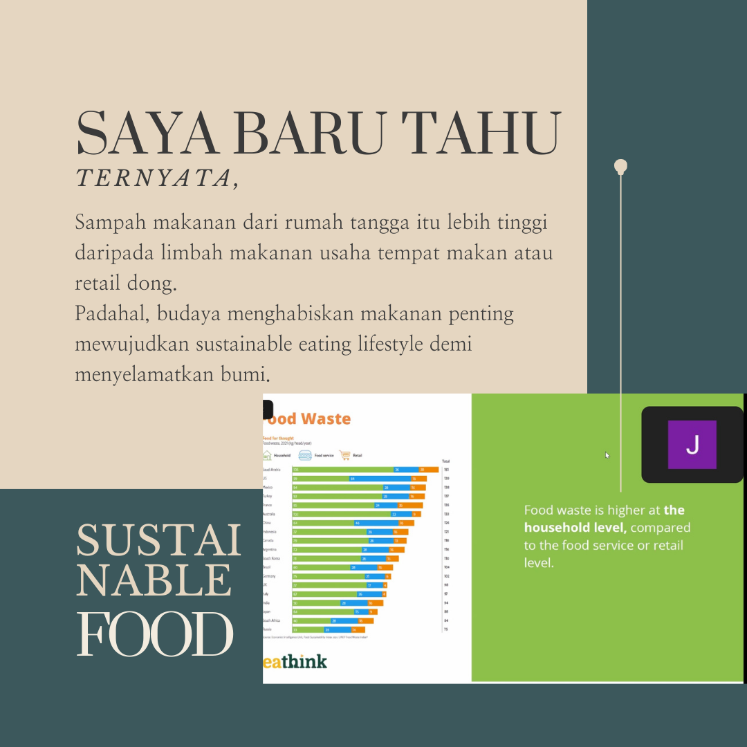 Dari online gathering yang diadakan Eco Blogger Squad kemarin Jumat, 20 Oktober 2023, saya baru tahu bahwa limbah makanan rumah tangga justru lebih tinggi daripada yang dihasilkan rumah makan atau retail. Fakta ini disampaikan oleh kak Jaqualine Wijaya dari Eathink selaku salah satu pembicara dalam kegiatan itu.