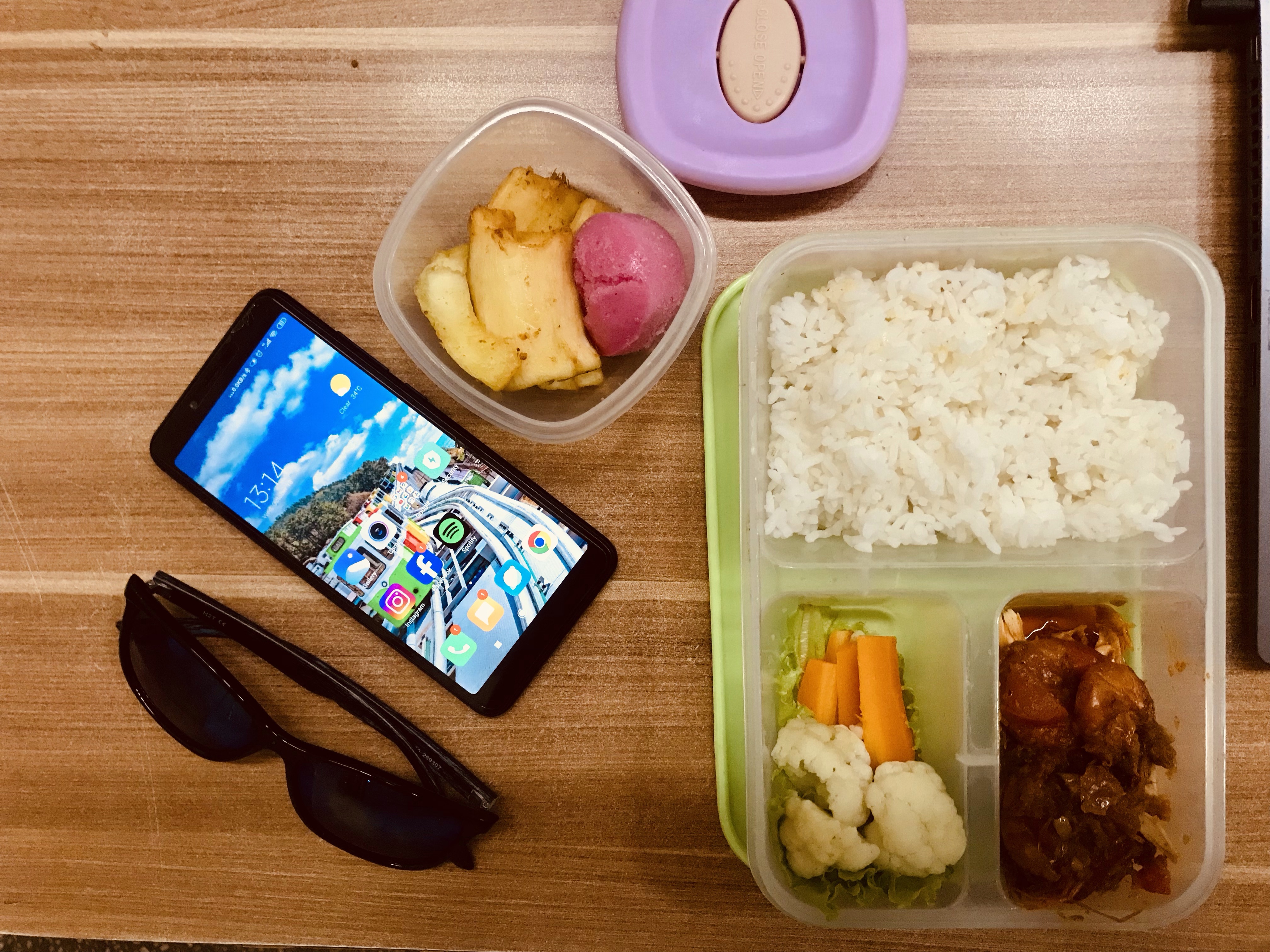 Bekal yang Ara bawakan tak hanya sekotak nasi dan lauk pauknya yang seringkali ia tata dengan manis. Ara juga menyertakan sekotak camilan, kopi, buah, dan tentu saja air minum (dingin dan panas). Buatnya, membawakan bekal makan siang bukan untuk mengelola keuangan rumah tangga, namun wujud kehadirannya selama saya bekerja. Meski dia tak ikutserta, namun hadirnya tetap terasa.