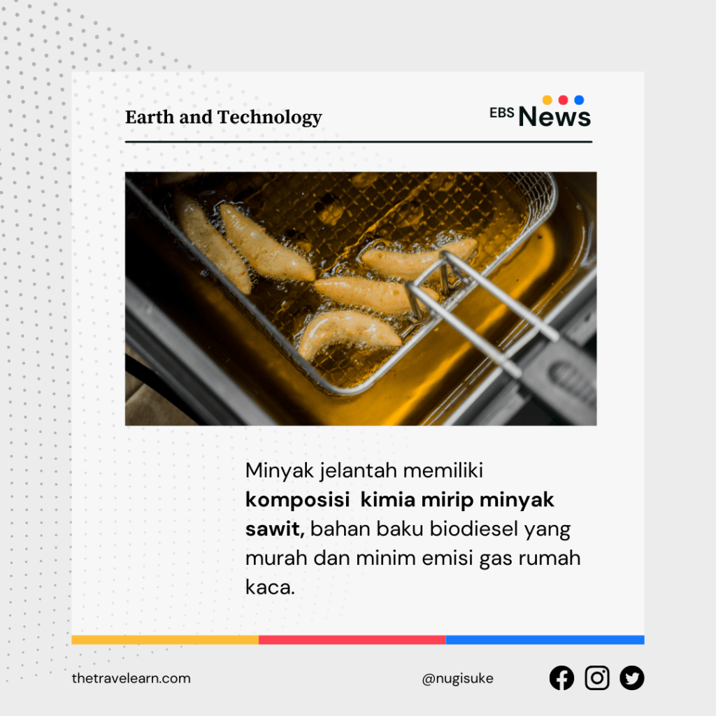 Siapa sangka, minyak jelantah yang selama ini kita anggap sampah ternyata masih ada manfaatnya untuk bumi. Campuran minyak sawit dan minyak jelantah mampu menurunkan emisi sebanyak 2,4% hingga 24% dari total target penurunan emisi sektor energi.