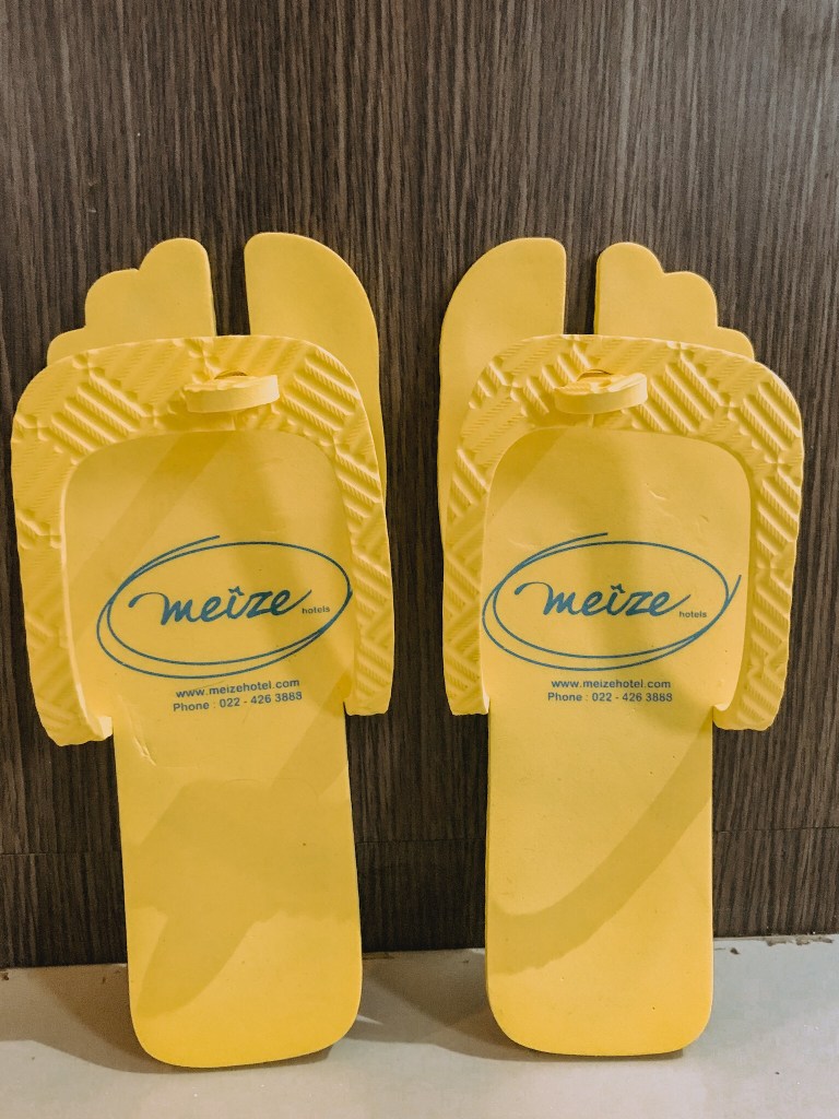 Seperti komentar teman-teman lainnya. Emang sendalnya menarik banget. Soalnya biasanya kan sendal hotel ya tau sendiri lah kalau gak putih atau item itupun modelnya sama. Dengan harga 325k worth it banget nginep disini.