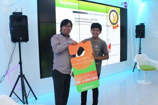 Aku masih ingat bagaimana aku naik travel sendirian ke Jakarta untuk menghadiri Rajakamar Awarding Night yang digelar di Senayan City, Jakarta Selatan. Aku barusan iseng cek email-nya, dan masih ada! Hari Senin, 30 September 2013, adalah hari yang sangat bersejarah untukku. Dengan muka dekil, kaos oblong abu-abu, dan celana jins hitam, aku naik ke atas panggung untuk menerima plakat bertuliskan hadiah utama Rajakamar Blog Competition berupa voucher hotel senilai Rp3 juta.