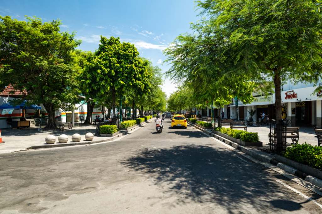 Di malam hari, lampu jalan dan papan nama toko saling berlomba memantulkan warna di permukaan aspal yang sedikit lembap, menciptakan bokeh dan flare yang menarik untuk percobaan foto long exposure. Kursi – kursi di trotoar baru, bangku dekat pohon, dan sudut – sudut kecil di sekitar Gedung Bank Indonesia bisa menjadi lokasi portrait urban dengan latar kota yang tetap terasa Jogja, bukan sekadar kota besar generik.