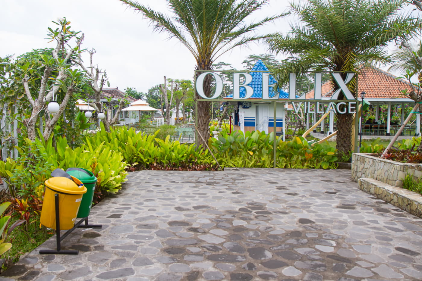 Di Sleman, Obelix Village menghadirkan suasana desa yang rapi dan bersih, dengan bangunan bergaya Jawa modern berwarna putih, kebun bunga berwarna – warni, dan area bermain keluarga yang tertata manis. Nuansanya terasa seperti memotret di set film keluarga: hangat, cerah, dan dipenuhi elemen kecil yang mengundang kamera untuk berhenti lebih lama.