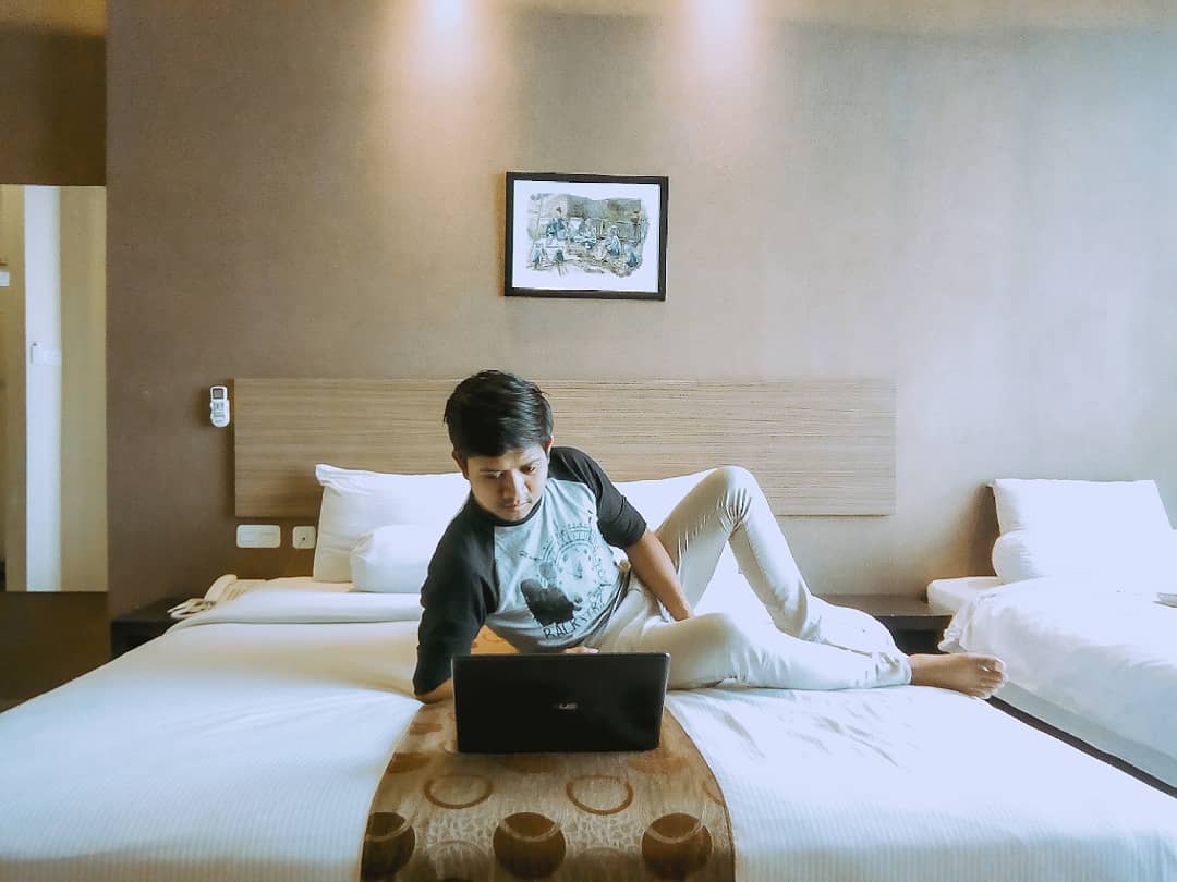 - Lorong kamar lantai 2 saat malam hari | RedDoorz Premium @ Moh Toha Bandung (The Batik Bed & Coffee)