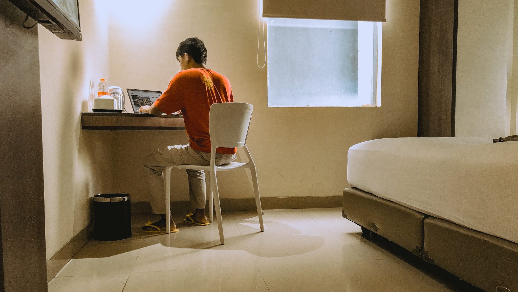 - Lorong kamar lantai 2 saat malam hari | RedDoorz Premium @ Moh Toha Bandung (The Batik Bed & Coffee)