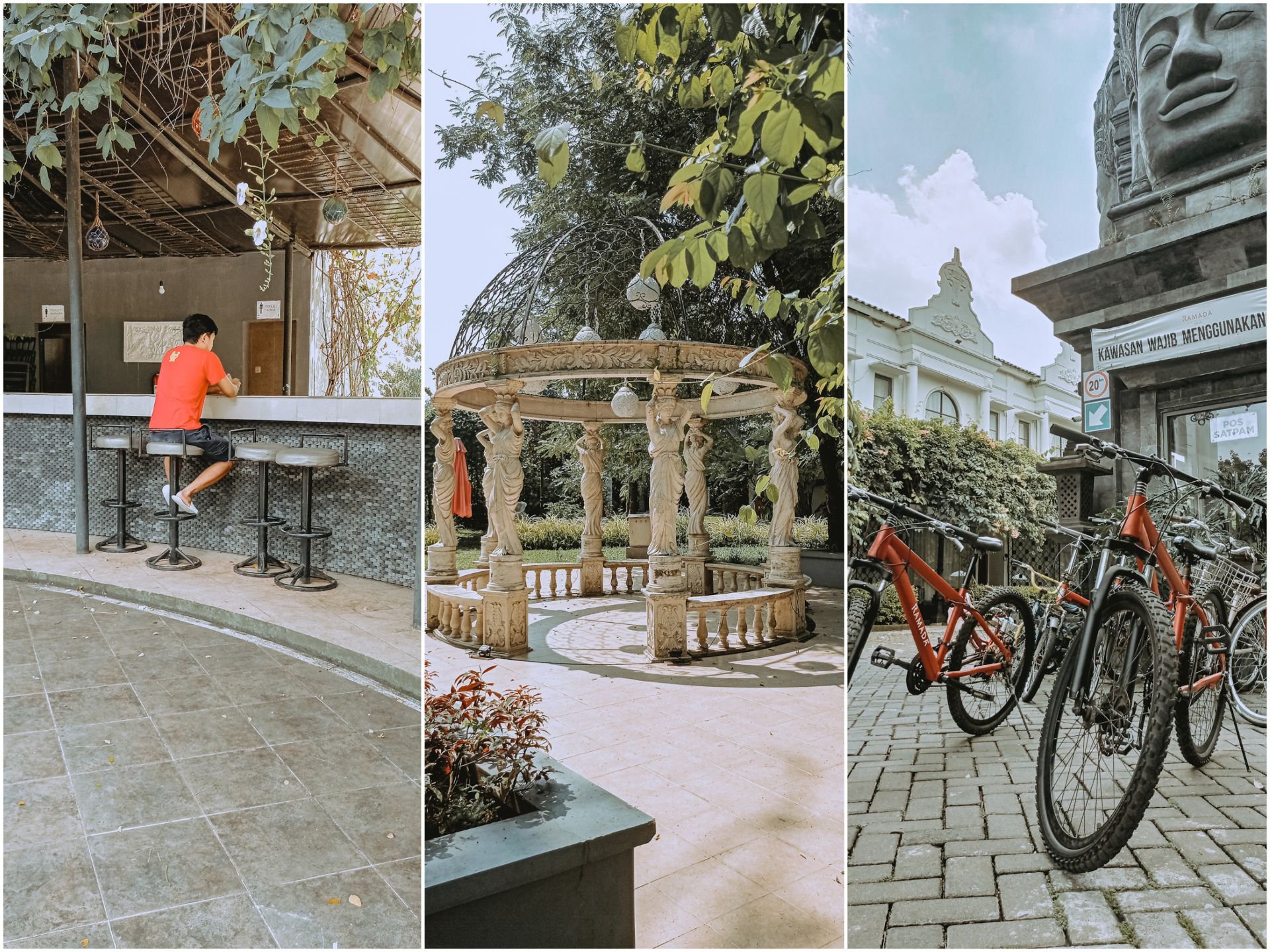 - Kiri: sepedaan di jalan tanah berdebu | Kanan: mejeng di depan hutan karet, Banyuasin, Sumatera Selatan